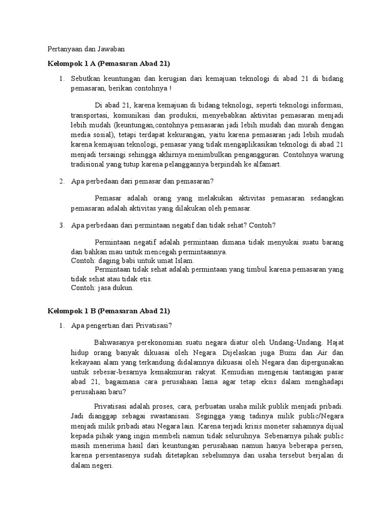 Pertanyaan Dan Jawaban Tentang Manajemen Pemasaran : Soal Analisis Saluran Pemasaran Wps Office Doc Soal Analisis Saluran Pemasaran Nama Kelompok 1 Rinda Oktia Wati K7617068 2 Sukma Nirmala Wati K7617084 Course Hero - Check spelling or type a new query.