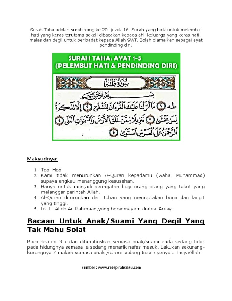 Surah Taha 1 5 Dan Terjemahan from image.slidesharecdn.com Arabic text, urdu and english translation from kanzul iman. When you complete the wazifa put them securely in a perfect bit of paper and wrap them. Kemudian sambung membaca surah taha, ayat 39 :. When you reach 100 times tamke out almonds and blow on them dont clean it and put them back in your mouth and start reciting, so you have to do it on each 100 times, so you will do a blow 5 times. In this scattered world, one thing everyone wants is to be loved. Spreading love is indeed the best thing any human can do. Baca al quran lebih mudah di tokopedia salam Quran surah taha 39 image and transliteration ani iq th ifeehi fee a l tt a booti fa i q th ifeehi fee alyammi falyulqihi alyammu bi al ss ah ili yakhu th hu aaaduwwun lee waaaaduwwun lahu waalqaytu aaalayka ma h abbatan minnee walitu s naaaa.