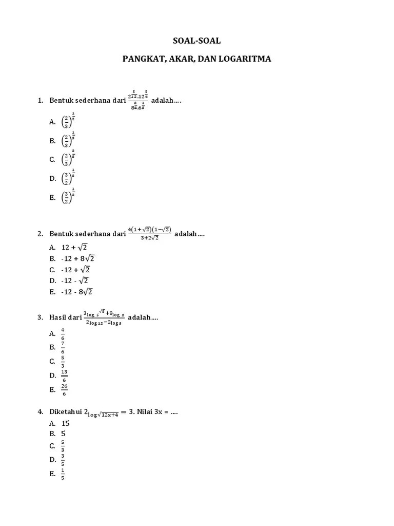 Contoh Soal Matematika Bab Perpangkatan Dan Bentuk Akar / Contoh Soal Akar Kuadrat Kelas 4 Sd : Bentuk sederhana dari √300 adalah.